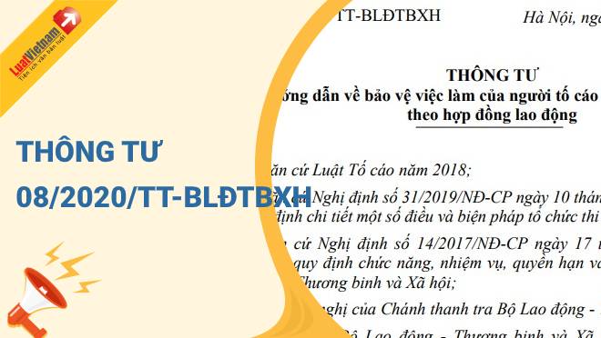 Thông tư 08/2020/TT-BLĐTBXH bảo vệ việc làm người tố cáo là người làm việc theo HĐLĐ