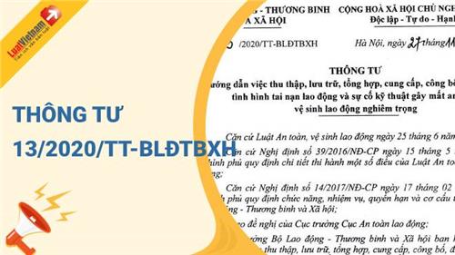Ngày 27/11/2020, Bộ Lao động Thương binh và Xã hội đã ban hành Thông tư 13/2020/TT-BLĐTBXH hướng dẫn việc thu thập, lưu trữ, tổng hợp, cung cấp, công bố, đánh giá về tình hình tai nạn lao động và sự cố kỹ thuật gây mất an toàn, vệ sinh lao động nghiêm trọng.