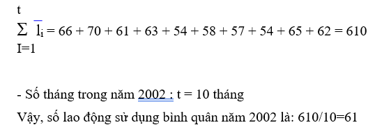 Số lao động sử dụng bình quân năm 2002 được tính như sau: