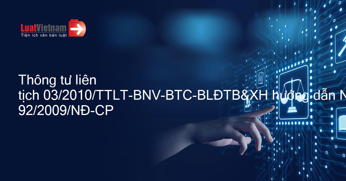 Thông tư liên tịch 03/2010/TTLT-BNV-BTC-BLĐTB&XH hướng dẫn Nghị định 92/2009/NĐ-CP