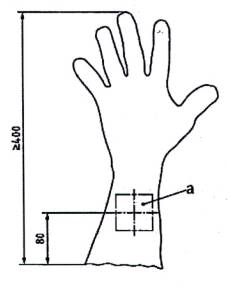 a Mẫu thử bổ sung được lấy từ tâm cách phía đầu cổ găng tay 80 mm.