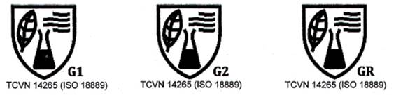 Hình ảnh được sử dụng phải dựa trên biểu tượng trong ISO 7000-3126. Hình ảnh phải là ISO 7000-3126 với TCVN 14265 (ISO 18889) được viết ở phía dưới và mức độ bảo vệ (ghi rõ G1, G2 hoặc GR tùy theo mức độ) ở bên phải của hình ảnh (xem Hình 3).