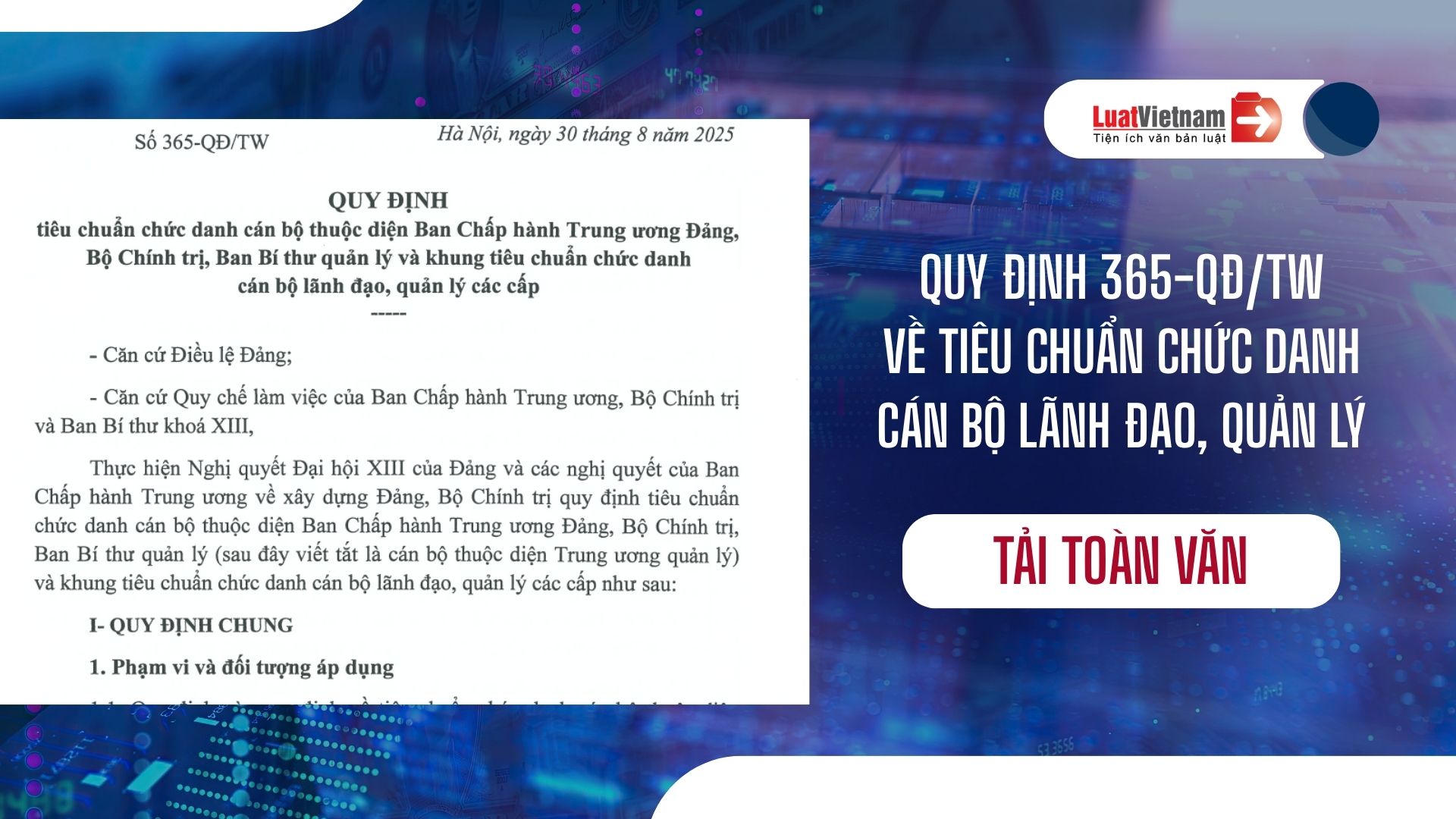 Quy định 365-QĐ/TW của Bộ Chính trị, ban hành ngày 30/8/2025, là một văn bản quan trọng nhằm định hướng tiêu chuẩn chức danh cán bộ thuộc diện Ban Chấp hành Trung ương Đảng, Bộ Chính trị, Ban Bí thư quản lý.