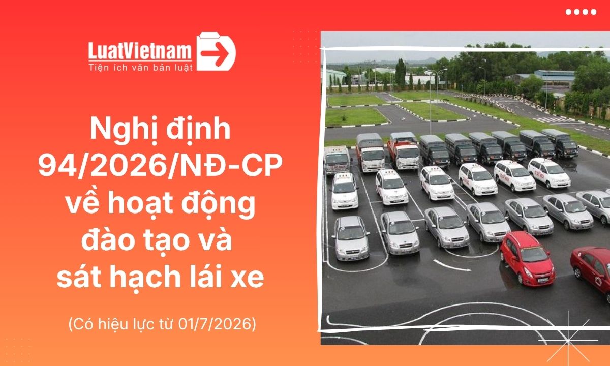 Theo Điều 3 Nghị định 160/2024/NĐ-CP, trung tâm sát hạch lái xe loại 2 được phép tổ chức sát hạch và cấp giấy phép lái xe các hạng A1, A, B1, B, C1 và C. Trong khi đó, ở quy định mới, danh mục này được điều chỉnh còn A1, A, B1, B, C1 và D1. Như vậy, Điều 3 Nghị định 94/2026/NĐ-CP bỏ hạng C và bổ sung hạng D1 vào phạm vi sát hạch của trung tâm loại 2.
