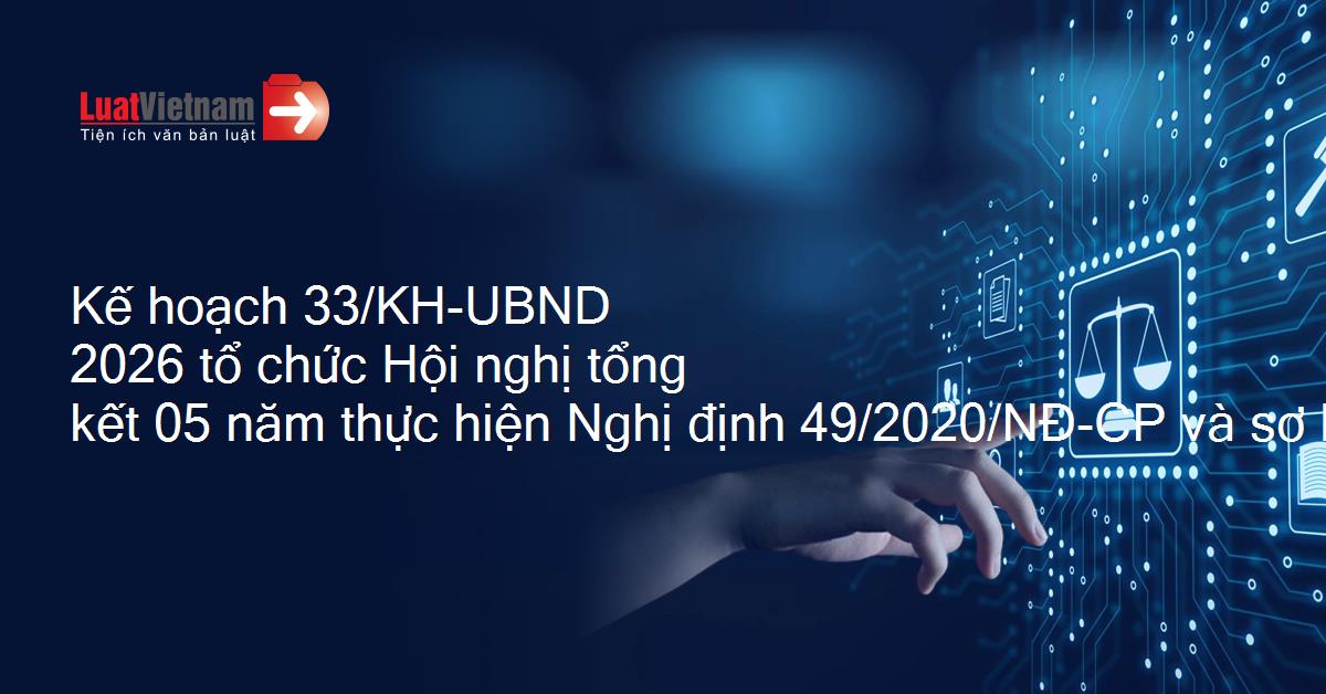Kế hoạch 33/KH-UBND 2026 tổ chức Hội nghị tổng kết 05 năm thực hiện Nghị định 49/2020/NĐ-CP và sơ kết 02 năm thực hiện Quyết định 22/2023/QĐ-TTg