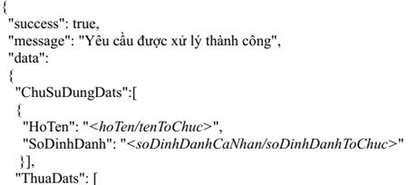 | 1 | MaHeThong | String | x | Mã hệ thống kết nối với CSDL quốc gia về đất đai (được cung cấp khi thực hiện kết nối) |