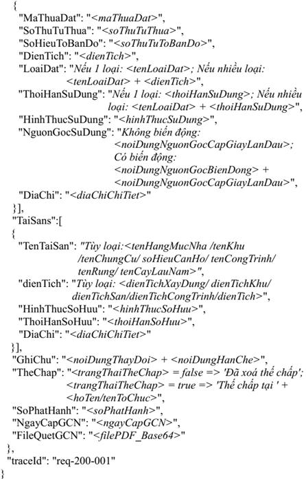 HƯỚNG DẪN KỸ THUẬT KẾT NỐI ĐỂ KHAI THÁC, SỬ DỤNG DỮ LIỆU THÔNG TIN GIẤY CHỨNG NHẬN TRONG CƠ SỞ DỮ LIỆU QUỐC GIA VỀ ĐẤT ĐAI NHẰM THAY THẾ THÀNH PHẦN HỒ SƠ TRONG GIẢI QUYẾT THỦ TỤC HÀNH CHÍNH