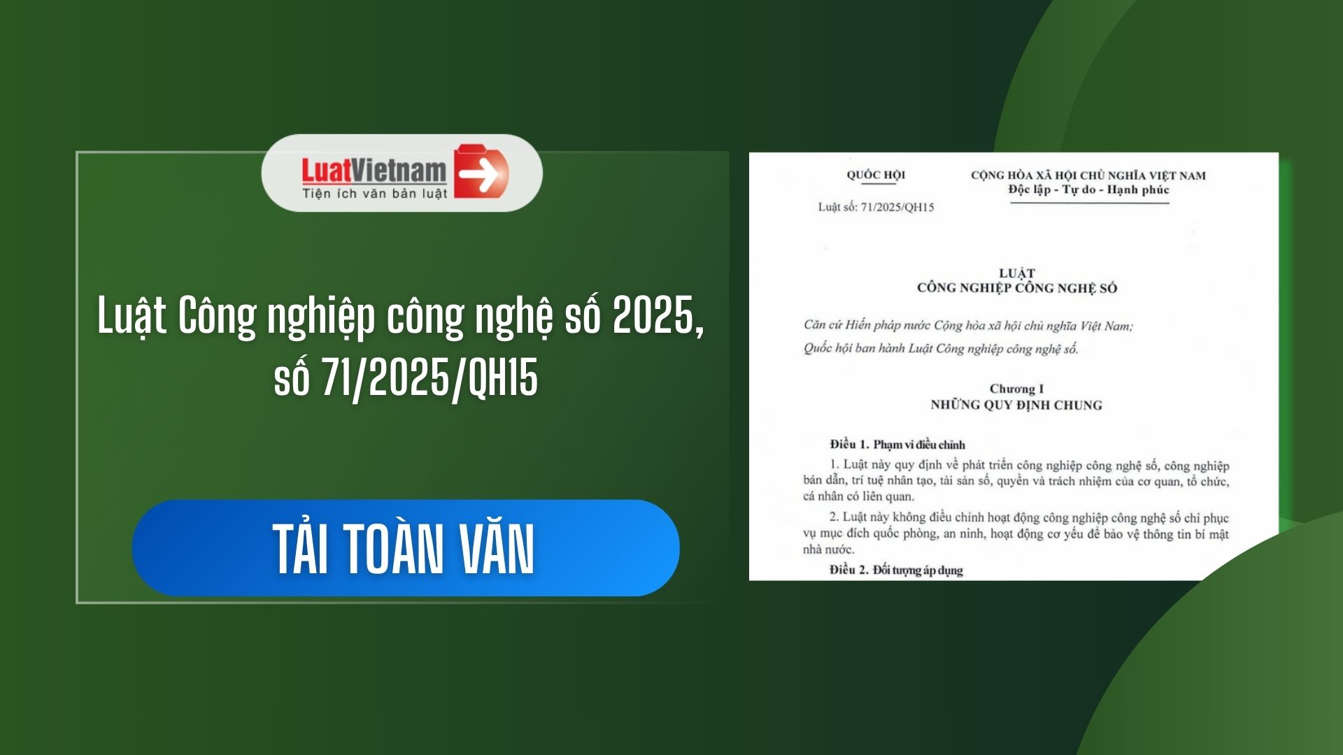 Luật Công nghiệp công nghệ số 2025, số 71/2025/QH15 được Quốc hội thông qua nhằm thúc đẩy sự phát triển của ngành công nghiệp công nghệ số tại Việt Nam.