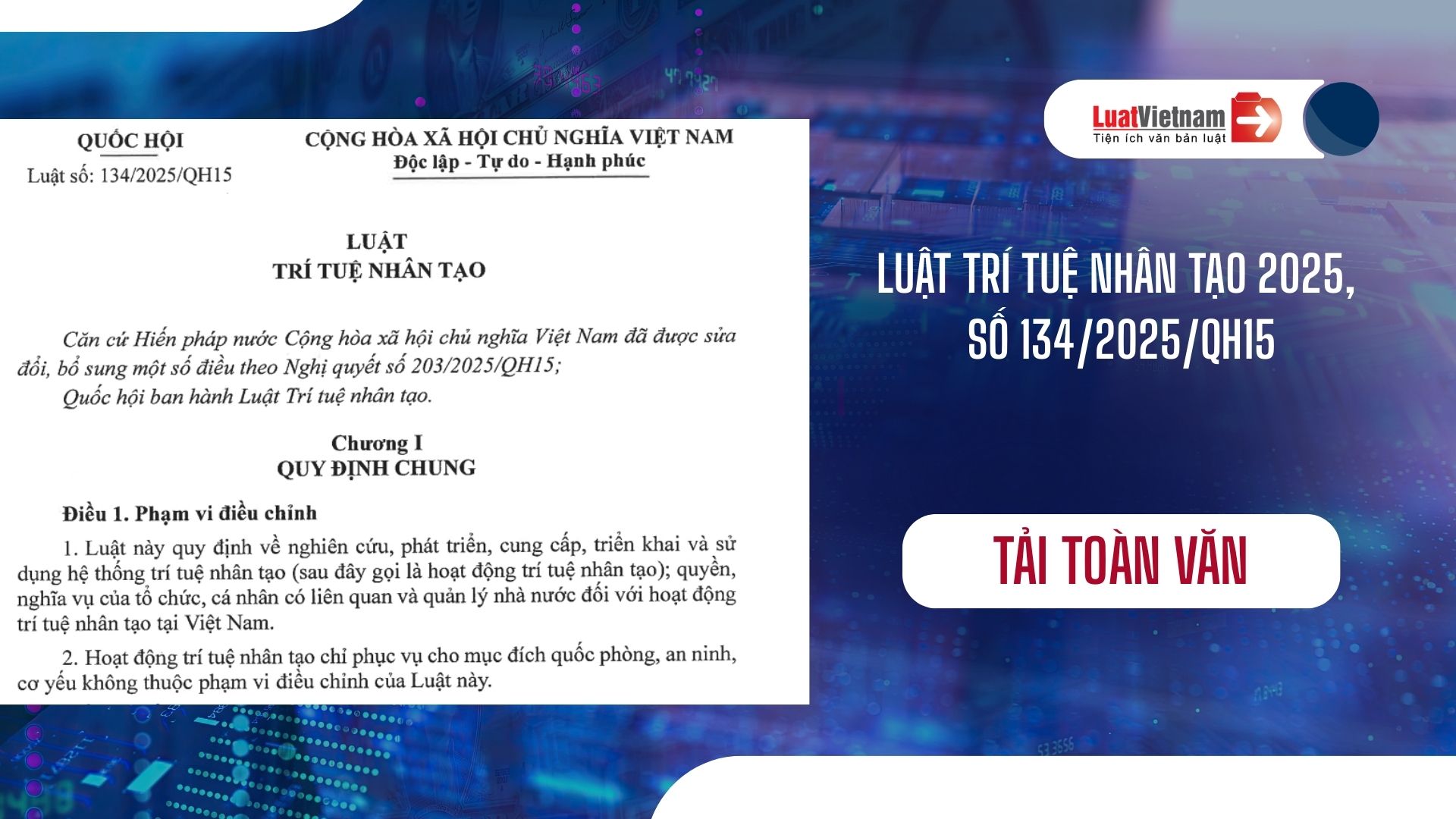 Để tải toàn văn Luật Trí tuệ nhân tạo 2025 dưới định dạng PDF và Word, bạn có thể truy cập vào đường dẫn do LuatVietnam cung cấp.