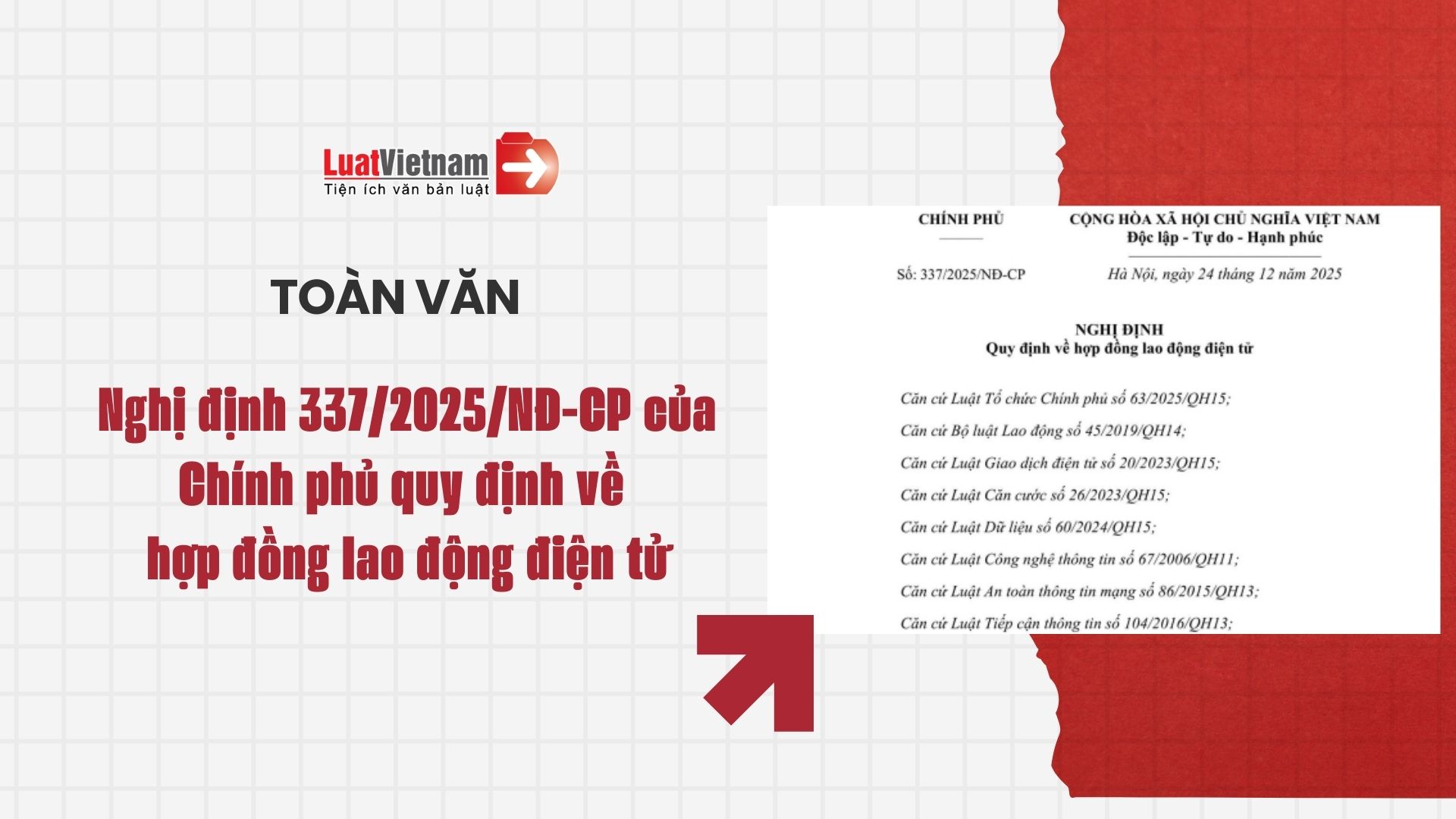 Nghị định 337/2025/NĐ-CP của Chính phủ, ban hành ngày 24 tháng 12 năm 2025, là một bước tiến quan trọng trong việc hiện đại hóa quy trình giao kết và thực hiện hợp đồng lao động tại Việt Nam.