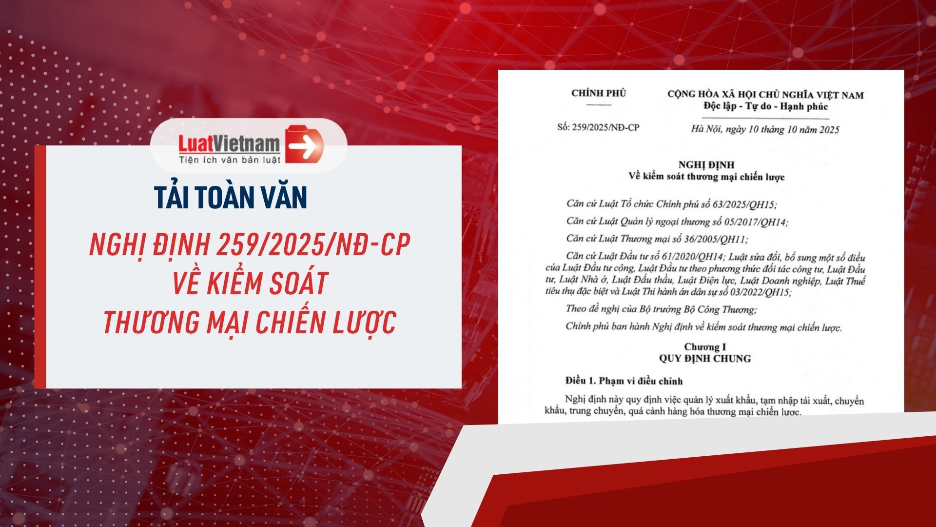 Nghị định 259/2025/NĐ-CP của Chính phủ, ban hành ngày 10 tháng 10 năm 2025, là một văn bản quan trọng trong việc quản lý và kiểm soát thương mại chiến lược tại Việt Nam.