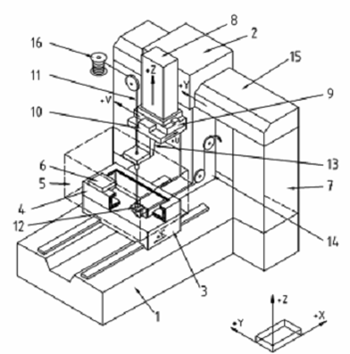 | Quan sát và tham chiếu 5.5.2.2.4 của TCVN 7011-1 Đặt tấm kiểm trên khung kẹp và điều chỉnh sao cho bề mặt song song với cả hai chuyển động của trục X và Y. Đặt ke vuông trụ trên tấm kiểm. Lắp đồng hồ so trên đầu máy. a) Đặt đồng hồ so tỳ vào ke trụ theo chiều trục X và di chuyển đầu máy theo hướng trục Z, theo chiều dài đo và ghi số đọc của đồng hồ so. b) Kiểm lặp lại cùng với một cách theo chiều trục Y. | ||