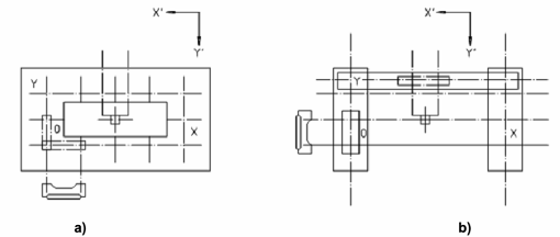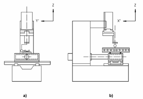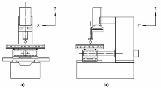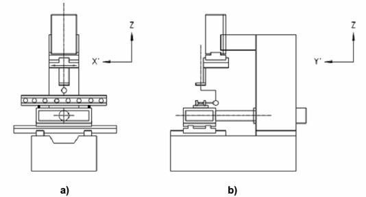 | Kiểm độ song song của bề mặt khung kẹp phôi đối với a) Chuyển động của trục X; b) Chuyển động của trục Y. | ||