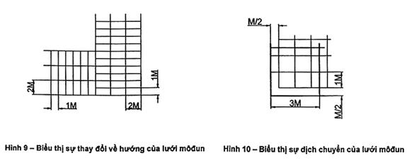 1.3. Các kích thước mô đun, đường và lưới mô đun làm cho công việc thiết kế và lập bản vẽ dễ dàng hơn. Các lưới mô đun bội có thể được bổ sung tới một chừng mực nhất định trên các bản vẽ kết cấu dùng cho chế tạo và kết cấu để định hướng và định vị.