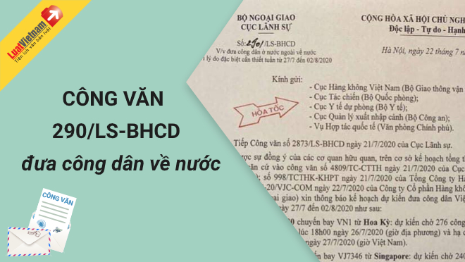 Công văn 290/LS-BHCD 2020 đưa công dân về nước vì lý do đặc biệt cần thiết