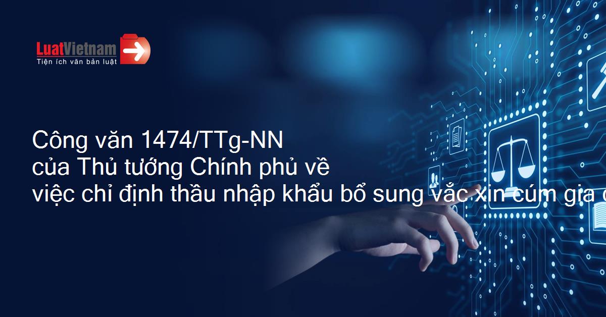 Công văn 1474/TTg-NN của Thủ tướng Chính phủ về việc chỉ định thầu nhập khẩu bổ sung vắc xin cúm gia cầm năm 2007