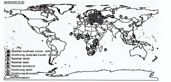 - Từ cuối năm 2017 đến nay, 12 quốc gia (bao gồm: Trung Quốc, Liên bang Nga, Ba Lan, Ba Lan, CH Séc, Hung-ga-ri, Lát-vi-a, Môn-đô-va, Phần Lan, Rô-ma-ni, Nam Phi, Ukraina và Zambia) báo cáo có Dịch tả lợn châu Phi.
