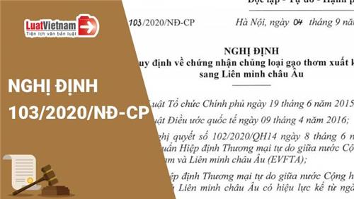 Nghị định 103/2020/NĐ-CP chứng nhận gạo thơm xuất khẩu sang Liên minh châu Âu