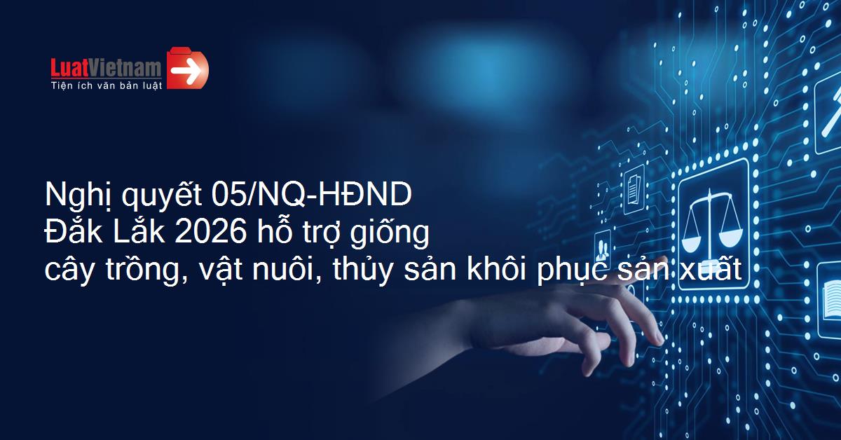 Nghị quyết 05/NQ-HĐND của Hội đồng nhân dân tỉnh Đắk Lắk hỗ trợ giống cây trồng, vật nuôi, thủy sản hoặc một phần chi phí sản xuất ban đầu để khôi phục sản xuất vùng bị thiệt hại do bão số 13 và mưa lũ tháng 11 năm 2025 trên địa bàn tỉnh