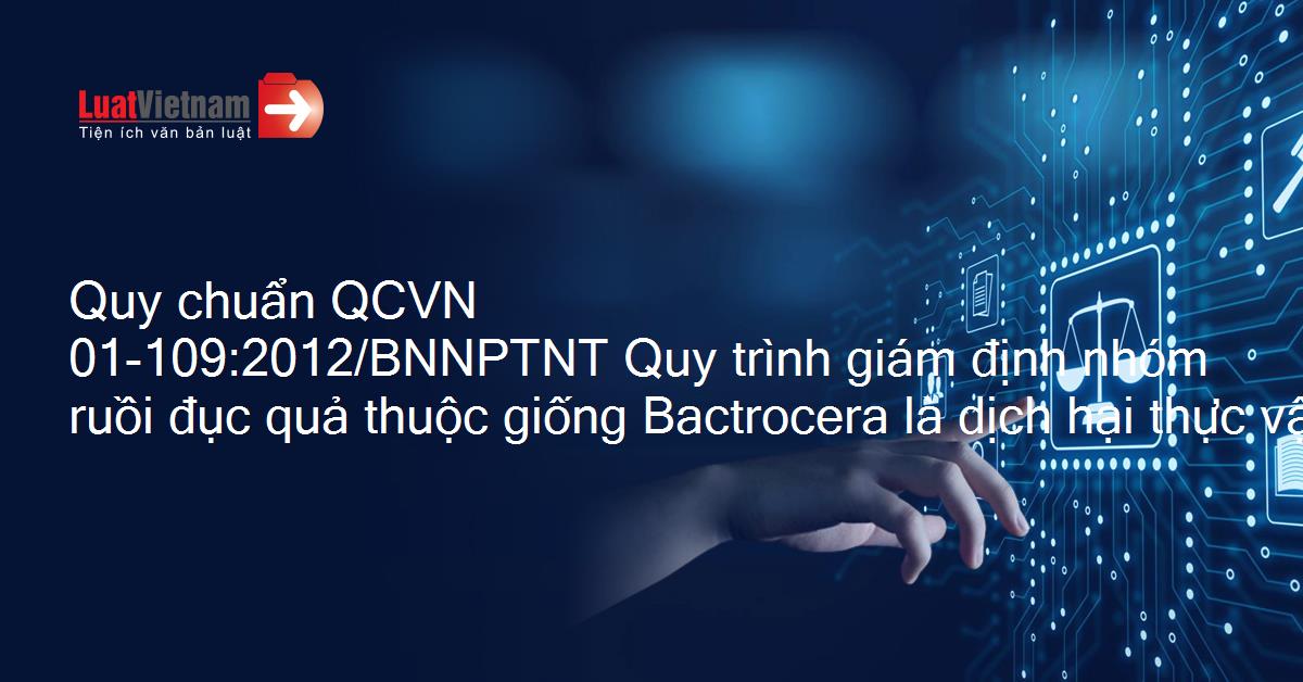 QCVN 01 - 109 : 2012/BNNPTNT do Ban Quy chuẩn kỹ thuật quốc gia về Quy trình giám định nhóm ruồi đục quả thuộc giống Bactrocera là dịch hại kiểm dịch thực vật tại Việt Nam biên soạn, Cục Bảo vệ thực vật trình duyệt, Bộ Nông nghiệp & PTNT ban hành tại Thông tư số 63/2012/TT-BNNPTNT ngày 14 tháng năm 12 2012.
