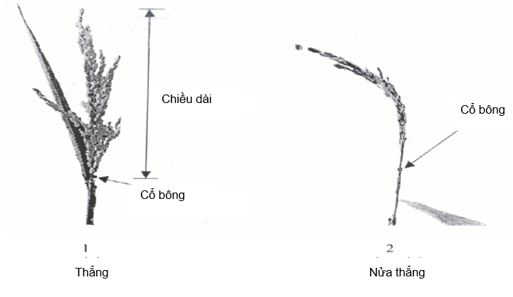 | 15. (*) (+) VG QN | Lá đòng: Trạng thái phiến lá (quan sát sớm) Flag leaf: Attitude of blade | 60 | Thẳng Nửa thẳng Ngang Gục xuống | 1 3 5 7 |