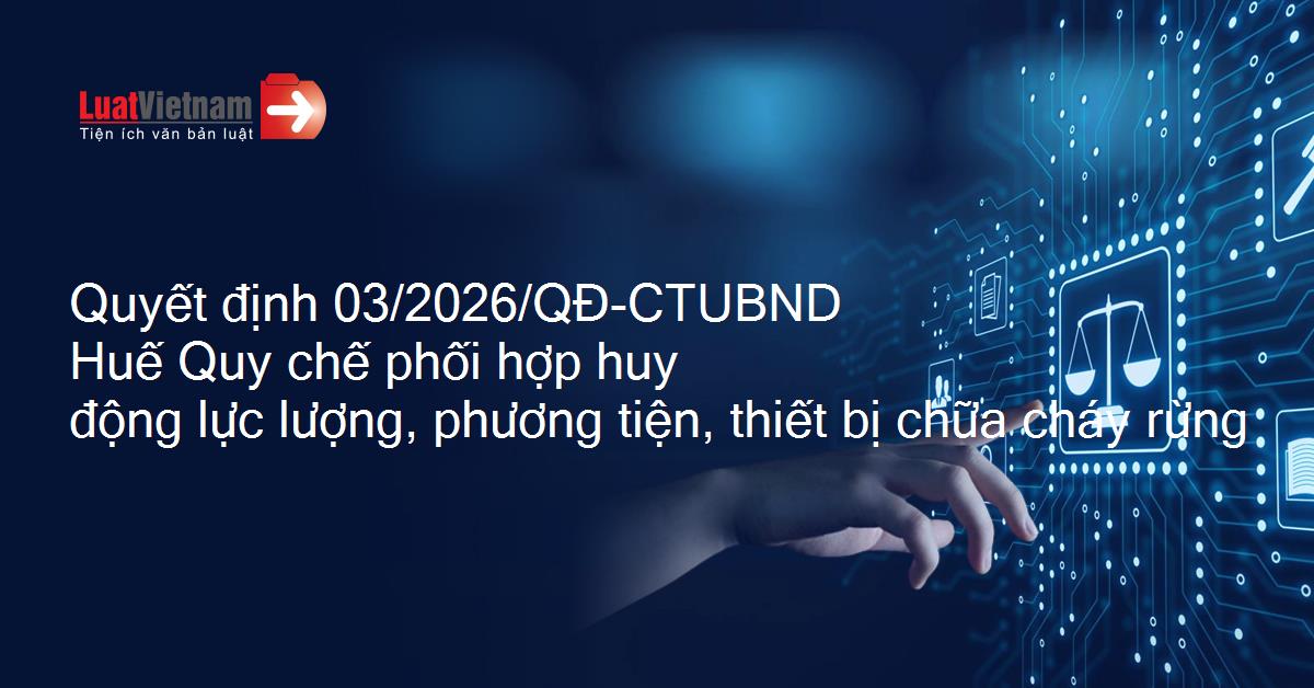 Quyết định 03/2026/QĐ-CTUBND của Chủ tịch Ủy ban nhân dân thành phố Huế ban hành Quy chế phối hợp huy động lực lượng, phương tiện, thiết bị chữa cháy rừng trên địa bàn thành phố Huế