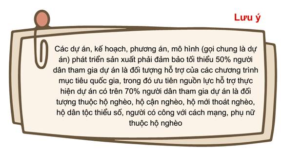 - Người lao động tham gia sản xuất nông nghiệp thuộc hộ nghèo, hộ cận nghèo, hộ mới thoát nghèo, người khuyết tật (không có sinh kế ổn định) trên phạm vi cả nước; người dân sinh sống trên địa bàn huyện nghèo, xã đặc biệt khó khăn vùng bãi ngang, ven biển và hải đảo;