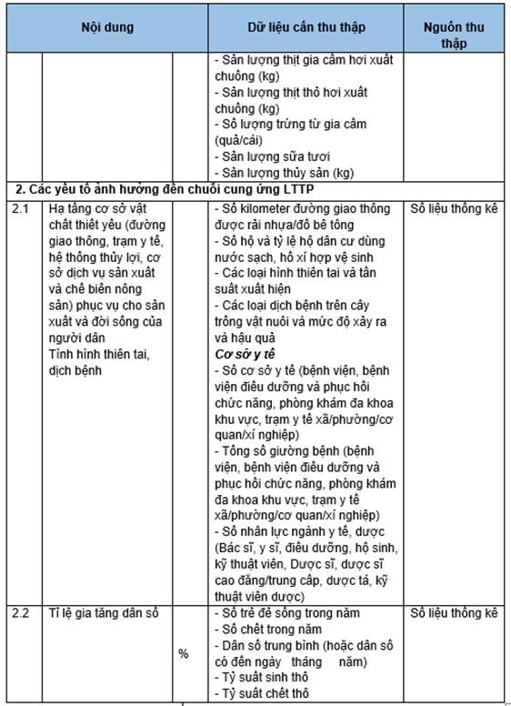 - Hỗ trợ theo các lĩnh vực để phát triển hệ thống LTTP gồm: trồng trọt, chăn nuôi, lâm nghiệp,..;