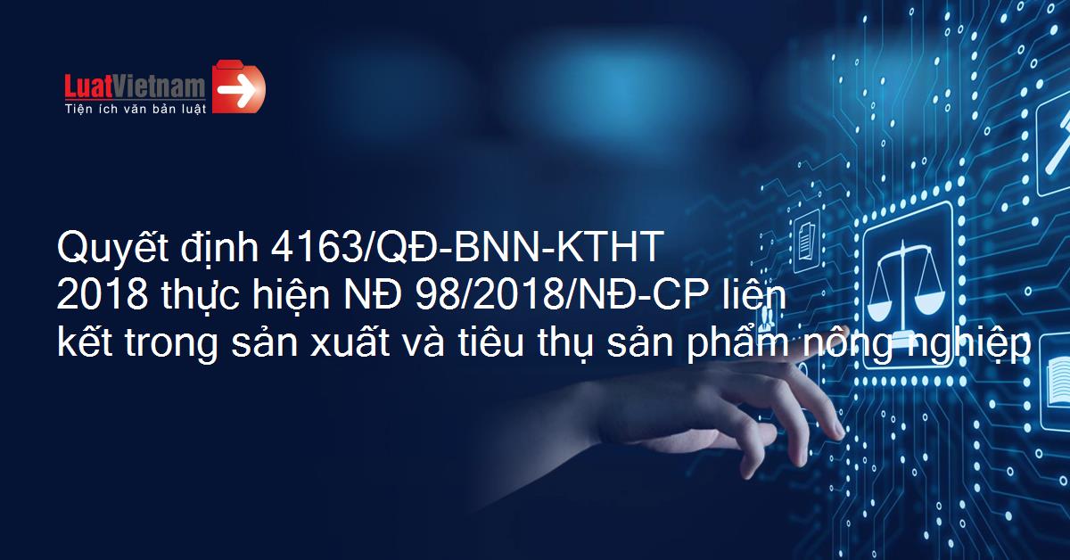 Quyết định 4163/QĐ-BNN-KTHT 2018 thực hiện NĐ 98/2018/NĐ-CP liên kết trong sản xuất và tiêu thụ sản phẩm nông nghiệp