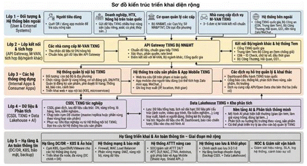 - Thiết kế, xây dựng Hệ thống trực tuyến với các công cụ truy xuất nguồn gốc điện tử, thông minh (mã số, mã vạch, QR code, công nghệ chuỗi khối (Blockchain),...) theo thời gian thực và tạo lập kho cơ sở dữ liệu dùng chung trên cơ sở kết nối, tích hợp, đồng bộ các CSDL thành phần các cơ quan đơn vị thuộc Bộ, các bộ ngành và địa phương; hình thành Hệ thống TXNG đồng bộ, thống nhất để các nông hộ, cơ sở sản xuất, kinh doanh cập nhật thông tin, dữ liệu vào Hệ thống, phục vụ việc quản lý, chia sẻ, truy vết thông tin, dữ liệu giữa các tác nhân trong chuỗi và cơ quan quản lý của Bộ.