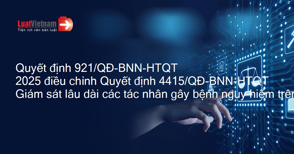 Quyết định 921/QĐ-BNN-HTQT 2025 điều chỉnh Quyết định 4415/QĐ-BNN-HTQT Giám sát lâu dài các tác nhân gây bệnh nguy hiểm trên động vật