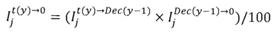 | : Chỉ số giá nhóm sản phẩm j tháng 12 năm trước (y -1), so với năm gốc (0), (được coi là tháng nối chuỗi); |