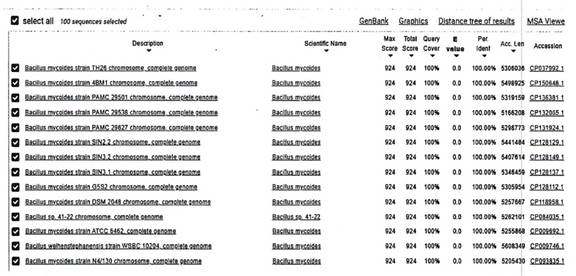 Kết quả định tính vi khuẩn Bacillus mycoides dựa trên kết quả so sánh trình tự được công nhận như sau:
