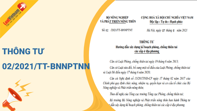 Ngày 07/6/2021, Bộ Nông nghiệp và Phát triển nông thôn ban hành Thông tư 02/2021/TT-BNNPTNT về việc hướng dẫn xây dựng kế hoạch phòng, chống thiên tai các cấp ở địa phương.