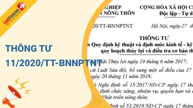 Ngày 27/10/2020, Bộ Nông nghiệp và Phát triển nông thôn đã ra Thông tư 11/2020/TT-BNNPTNT về việc ban hành Quy định kỹ thuật và định mức kinh tế - kỹ thuật cho hoạt động quy hoạch thủy lợi và điều tra cơ bản thủy lợi.