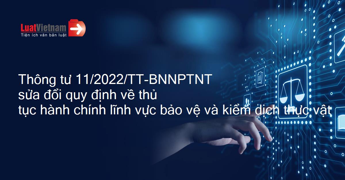 Ngày 20/9/2022, Bộ Nông nghiệp và Phát triển nông thôn ban hành Thông tư 11/2022/TT-BNNPTNT sửa đổi, bổ sung một số quy định về thủ tục hành chính trong lĩnh vực bảo vệ và kiểm dịch thực vật.