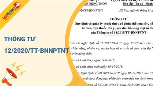 Ngày 09/11/2020, Bộ Nông nghiệp và Phát triển nông thôn ban hành Thông tư 12/2020/TT-BNNPTNT quy định về quản lý thuốc thú y có chứa chất ma túy, tiền chất; kê đơn, đơn thuốc thú y; sửa đổi, bổ sung một số điều của Thông tư 18/2018/TT-BNNPTNT.