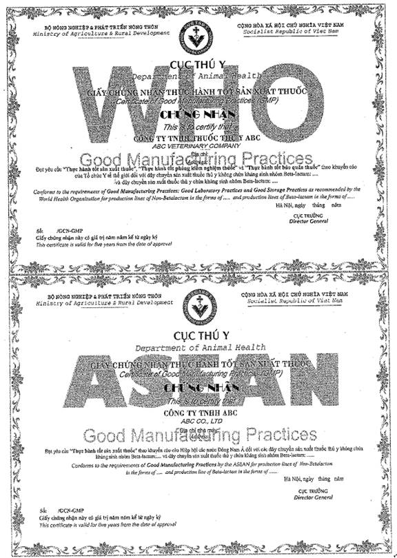 GIẤY XÁC NHẬN NỘI DUNG QUẢNG CÁO THUỐC THÚ Y