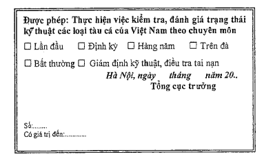 ………………………, ngày……tháng…….năm……….. ĐĂNG KIỂM TÀU CÁ |