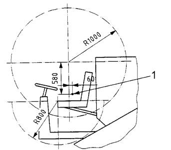 1 Điểm chỉ báo chỗ ngồi (xem ISO 5353:1995); R800 Tầm với chân; R1000 Tầm với tay.