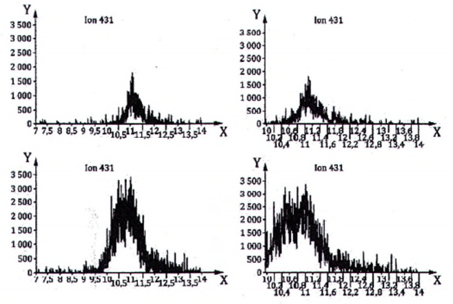 - đối với các pic khớp một phần, chỉ tích phân diện tích phù hợp (xem Hình C.3, ví dụ đối với m/z 431).