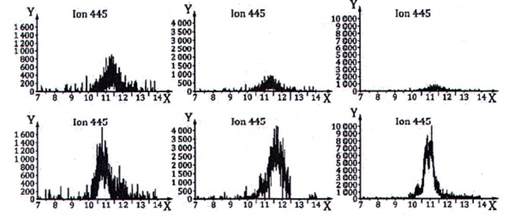 Diện tích pic từ bốn mảnh phổ định lượng của chất chuẩn được cộng lại, tương ứng với nồng độ chất chuẩn đó. Diện tích pic của mẫu thực tế cũng được cộng lại và nồng độ của mẫu thực tế được tính toán dựa trên diện tích pic và nồng độ tương ứng của chất chuẩn.