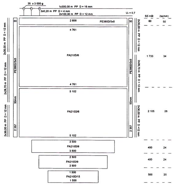 TV2, TV4, TV5 thao lưới và sắp xếp từ phía mũi về phía đuôi theo trình tự: hệ thống dây, lưới, giềng phao, giềng chì, đá dằn, neo.