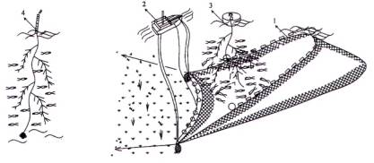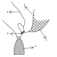 CHÚ THÍCH: Giềng miệng (giềng chì) được gắn các vòng khuyên cùng với giềng rút. Giềng miệng sẽ được nhấc lên và rút gọn lại để bắt cá khi cá đã ở trong vùng hoạt động của lưới mành.