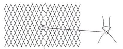 CHÚ THÍCH: Giềng giữa (giềng phao) duy trì lực nổi cho toàn bộ nửa trên của lưới mành trong quá trình hoạt động và để gắn lưới với phao. Giềng giữa sử dụng 2 dây: Giềng băng và giềng luồn.