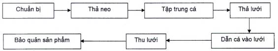 Trình tự thu lưới: đá đòi, giềng chì, giềng phao, lưới, dây và bè đèn.