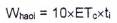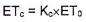 ET0 là lượng bốc thoát hơi nước tiềm năng (bốc hơi nước tiêu chuẩn), mm/d. ET0 được xác định bằng đo đạc tại hiện trường từ lượng bốc hơi của cây trồng tiêu chuẩn hoặc tính toán từ các số liệu khí tượng. ET0 cũng có thể được tính toán từ số liệu đo lượng bốc hơi nước mặt thoáng bằng chậu đo bốc hơi theo công thức (5):