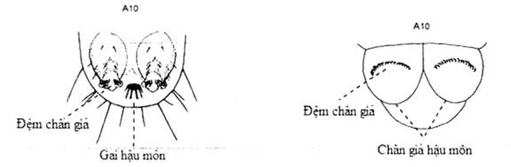 + Dùng kim côn trùng đầu nhọn (3.14) và panh mềm (3.1.3) ấn vào phần cuối bụng, gạt nhẹ để cơ quan sinh dục trưởng thành đực trồi ra. Thao tác thực hiện trên đĩa petri (3.10).