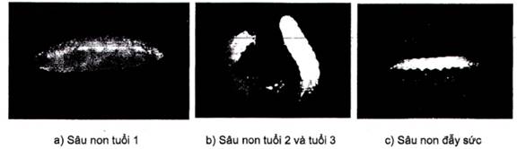 Sâu non tuổi 2 và tuổi 3 (hình 8b): đầu và mảnh lưng ngực màu nâu đen, ngực màu vàng nhạt, đốt bụng cuối và chân ngực màu nâu vàng nhạt. Sâu non càng tuổi lớn thân màu trắng đục, hồng hoặc hơi xanh hay vàng nhạt.