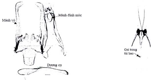 + Dùng kim côn trùng đầu nhọn (3.14) và panh mềm (3.13) tách lấy cơ quan sinh dục trưởng thành đực.
